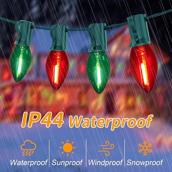 - Old-fashioned Christmas lights: Clear red/green incandescent lights and green lines look more restored to natural and original colors. So its light is soft, which obviously makes our holiday environment comfortable and pleasant. Perfect for decorating your home, Christmas, holidays, winter, shops, backyards, gardens, courtyards, walls, gates, yards, Christmas trees, Windows, parties and every occasion before Christmas.