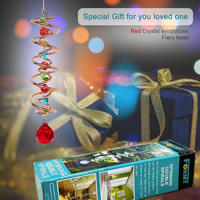 - 【HIGH QUALITY】:Made of stainless steel wire wilth golden color plating and crystal material, specail double structure spiral tail w/ solid red color K9 crystal glass ball and raibow color chain crystals , promised good weather resistant and amazing decoration. All FONMY crystal ball made of top crystal glass material with finely crafted, high clarity and cast beautiful rainbows, could turn the sun's rays into many rainbows.