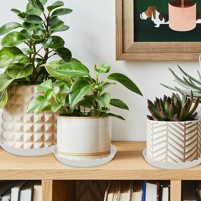 - High quality: The plant saucers are specially made of thick and PP resin material and wave design, making them thicker and stronger than others. Good impact resistance, fall resistance, sun resistance and aging resistance, Durable enough to hold heavy pots
