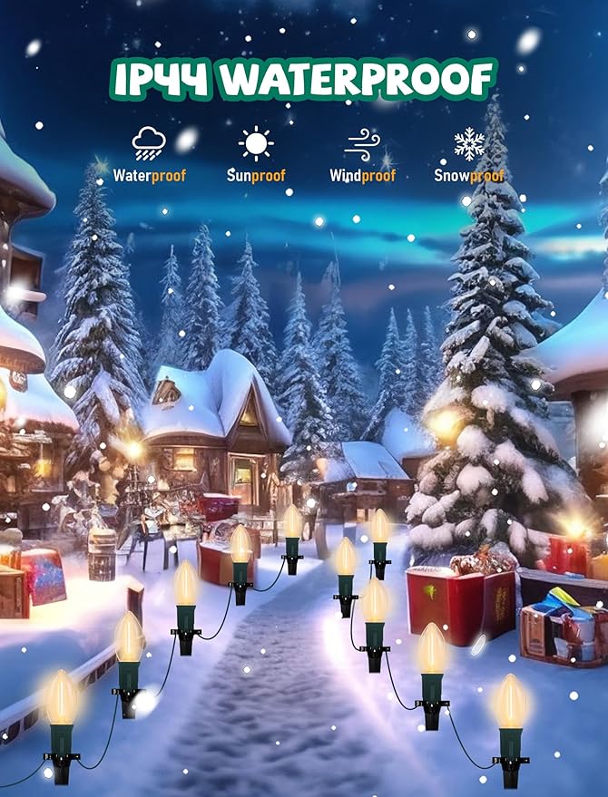 - Safe and Energy Efficient LED Bulbs: C9 christmas lights outdoor with 27 C9 led warm white bulbs(2 Spare), E17/C9 intermediate socket base, Enjoy bright and long-lasting illumination with 0.6W energy-efficient C9 LED warm white bulbs that stay cool to the touch while saving on energy costs. 38 feet connectable christmas driveway lights prefer to line pathways, driveways, or wrap around trees and bushes, add a touch of elegance and charm to your holiday decor, casting a cozy and enchanting ambiance that will make your home stand out during the festive season.