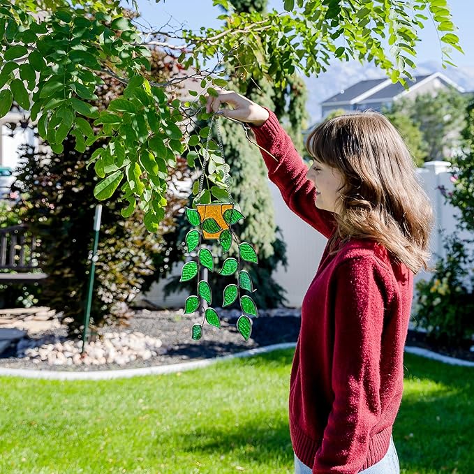 - πΏ ππππππ ππ ππππππ: The light of the day gently daincing in between Stain Glass Hanging Glass Plants. Handmade from real stained glass, our vibrant, translucent stained glass plant is perfect decor, gifts for women, memorial gifts.