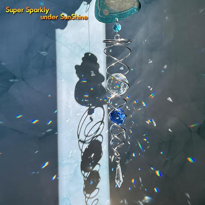 - 【PREMIUM CRYSTAL SUNCATCHER】The spiral with crystal is a special sun catcher rainbow maker, it’s Super Sparkly under sunshine. You can also add a motor(not include) to let the spiral to spin ,while spiral tail rotating (it can’t spin by itself.), the crystal ball seems to move up and down like floating and dancing in air, presents the magical visual illusion.