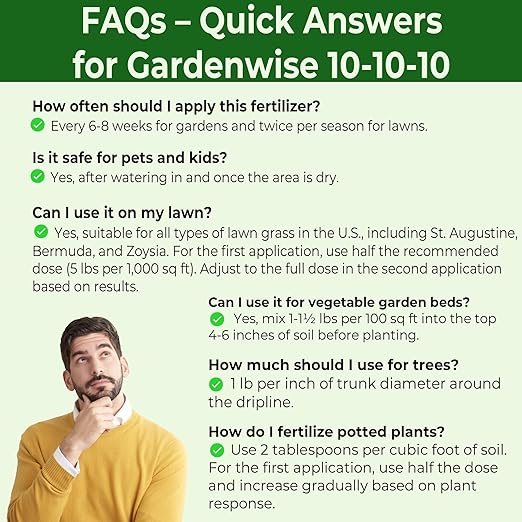 - πΏ Balanced 10-10-10 Granular Fertilizer for Outdoor & Indoor Plants: All-purpose plant food with 10% Nitrogen, 10% Phosphorus, and 10% Potassium. Perfect for outdoor vegetable gardens, fruit trees, evergreens, shrubs, lawns, and flowers. Also great for potted plants and indoor gardening. One solution for all your plant needs!