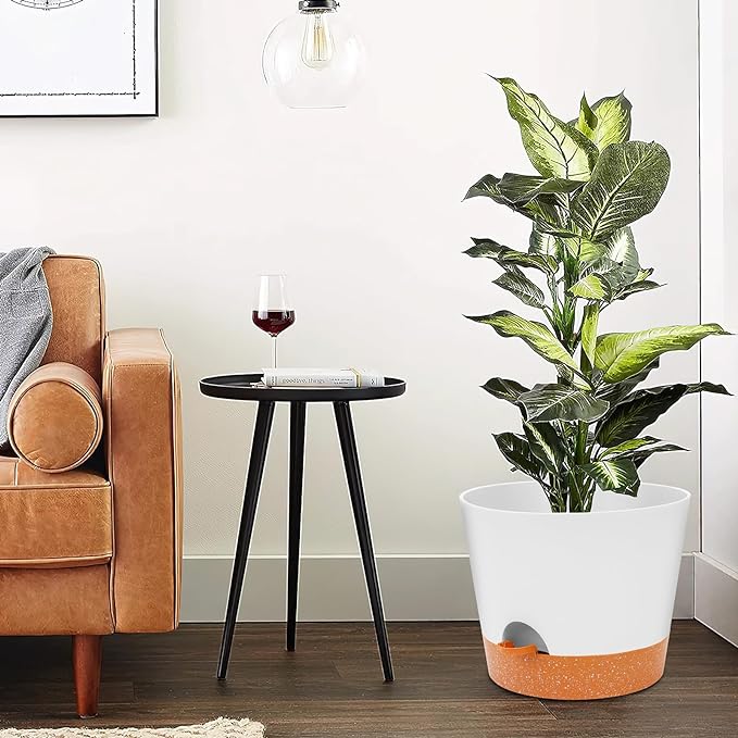 GARDIFE 12 inch Plant Pots, planters, Self Watering Pots, Large Plastic Flower pots with Deep Reservior and High Drainage Holes for Indoor Outdoor Plants and Flowers, White