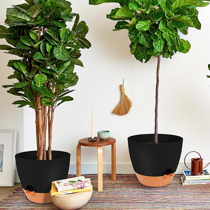 GARDIFE 12 inch planters, Plant Pots,Self Watering Pots, 2 Pack Large Plastic Flower pots with Deep Reservior and High Drainage Holes for Indoor Outdoor Plants and Flowers, Black