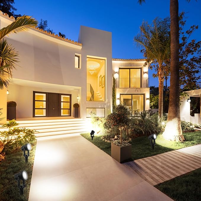 - SUPER BRIGHT SPOTLIGHT - Landscape spot light are equipped with high-quality LED beads which can provide a larger bright area with 3000k warm white light. 90°beam angle and 270°adjustable headlights illuminate every corner of your place. Let your garden be more attractive and decorative under high lumen output at night.