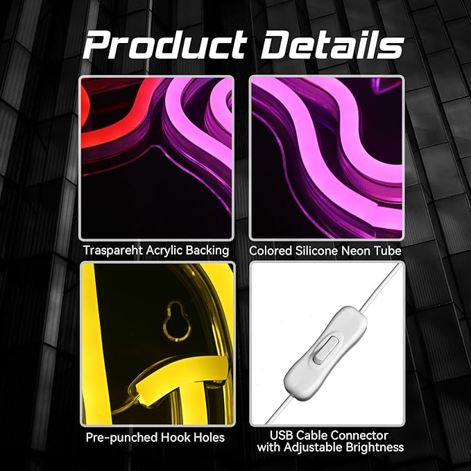 - SMILE FACE: Cute and funny smile neon lights brighten up your night! Hopefully the creative look and colorful light can bring you a warm and happy vibe that will keep you happy all day long.