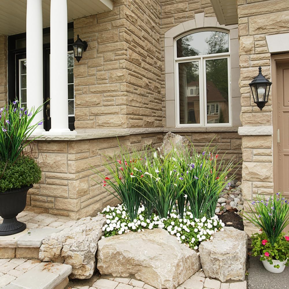 Melorca&Guilla Artificial Plants Outdoor 6PCS 23“ Fake Tall Grass,Fake Outdoor Plants,Faux Plants with Flowers for Garden Porch Window Box Shop Office Home Décor