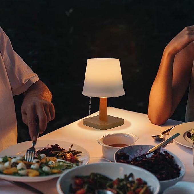 - 【Cordless Outdoor Table Lamp】-- Elegant Design, no wiring, appearance is simple and beautiful. The built-in power source makes it wireless. Waterproof design.