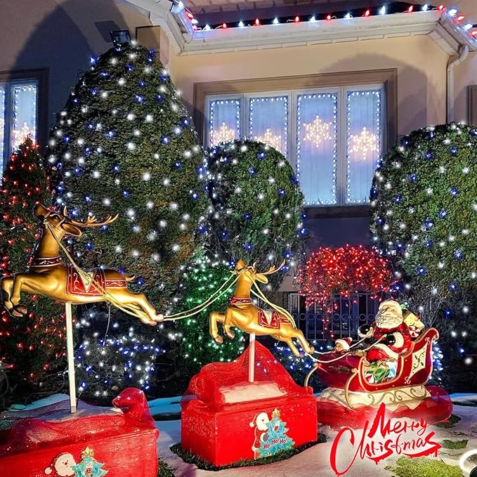 - 8 Lighting Modes Solar Christmas Lights: Blue&White solar christmas lights outdoor are 8 different settings on the back of the solar panel to creates a dreamy feeling and your garden looks like a enchant fairy land at night. Blue&White christmas lights are an amazing addition to your yard, create a pleasant mood for events, parties or weddings