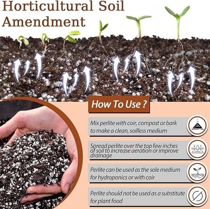 - Wide Usage: Horticultural perlite for plants can be used for seedling propagation and cuttings, soil amendments, hydroponics, rooftop gardens and so on. Great for use as soil additive for containerized plants, making plants grow healthy while looking neat and beautiful. Suitable for all kinds of tropical plants, orchids and more