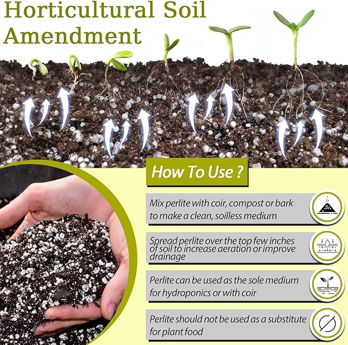 - Wide Usage: Horticultural perlite for plants can be used for seedling propagation and cuttings, soil amendments, hydroponics, rooftop gardens and so on. Great for use as soil additive for containerized plants, making plants grow healthy while looking neat and beautiful. Suitable for all kinds of tropical plants, orchids and more