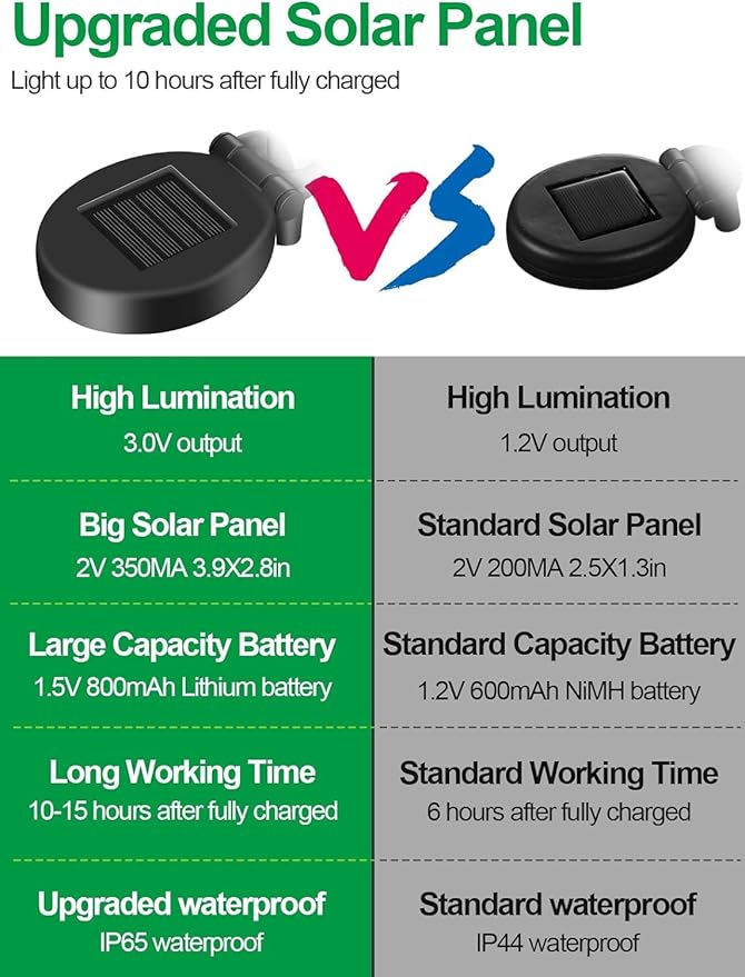 - ใ๐๐๐% ๐๐จ๐ฅ๐๐ซ ๐๐จ๐ฐ๐๐ซ๐๐ & ๐๐ฎ๐ญ๐จ ๐๐ง/๐๐๐ใEquipped with fully upgraded 1.5V/800mAh solar panels, convert sunlight into electricity faster and reach up to 25% more efficient than ordinary solar lights, work up to 10 hours. The solar cross lights will be auto-on/off & charged by sensing the surrounding environment. โ ๏ธ(Note: Please turn on the switch "ON" for charging).