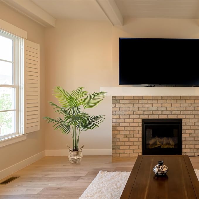 - Nearly Natural Design: The leaves is easy to assemble and stable. At the bottom of trunks with real natural bark, which makes the areca palm tree more realistic and looks no different from a real tree.