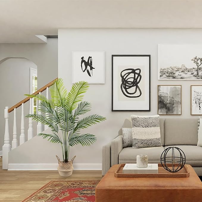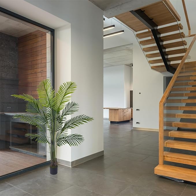 - Nearly Natural Design: The leaves is easy to assemble and stable. At the bottom of trunks with real natural bark, which makes the areca palm tree more realistic and looks no different from a real tree.