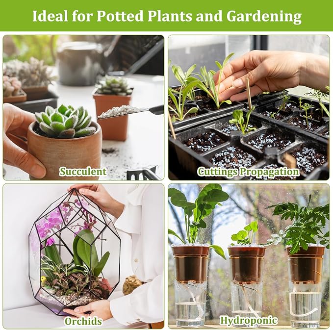 - PH Neutral: Horticultural perlite is a volcanic stone, which is created as a result of the confluence between liquid lava and sea water, which are light and long-lasting, not easy to decompose; It also resists compaction, helping to keep soil light and making it ideal for indoor gardening; It also provides space for root expansion and promotes root and plant growth