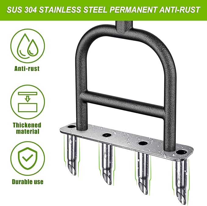 - Stainless Steel Corer Plug: Enjoy the durability and strength of this lawn coring aerator, which is made of all steel with a black powder coated finish, It with stainless steel bottom and corer plug that will not rust or bend.