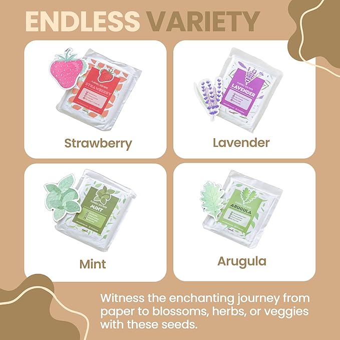 - [ Educational and Fun Tool for Teaching Children ] - Through the captivating transformation from paper to vibrant flowers, flavorful herbs, or nutritious vegetables, both children and adults are immersed in the enchanting world of nature. This interactive journey fosters a deeper understanding and appreciation for the wonders of our environment, igniting a sense of responsibility towards environmental conservation.