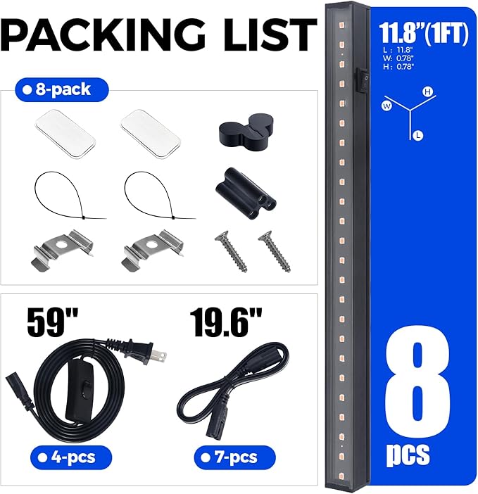 - Super Bright and High PPFD: Our 1ft plant lamp consuming only 40W (8x5W, 8-pack) with 192 LEDs totally, replace 250W general plant lights. Over 95% light energy can be absorbed by plants. This t5 growing lamp 1ft is a great option for plants that in seedling, vegetative and flowering cycle