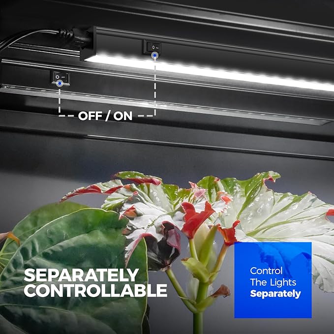 - Separately Controllable: Each 1 ft grow light fixture have on off switch on the surface of housing, controlling the lights separately or together according PPFD that plants need