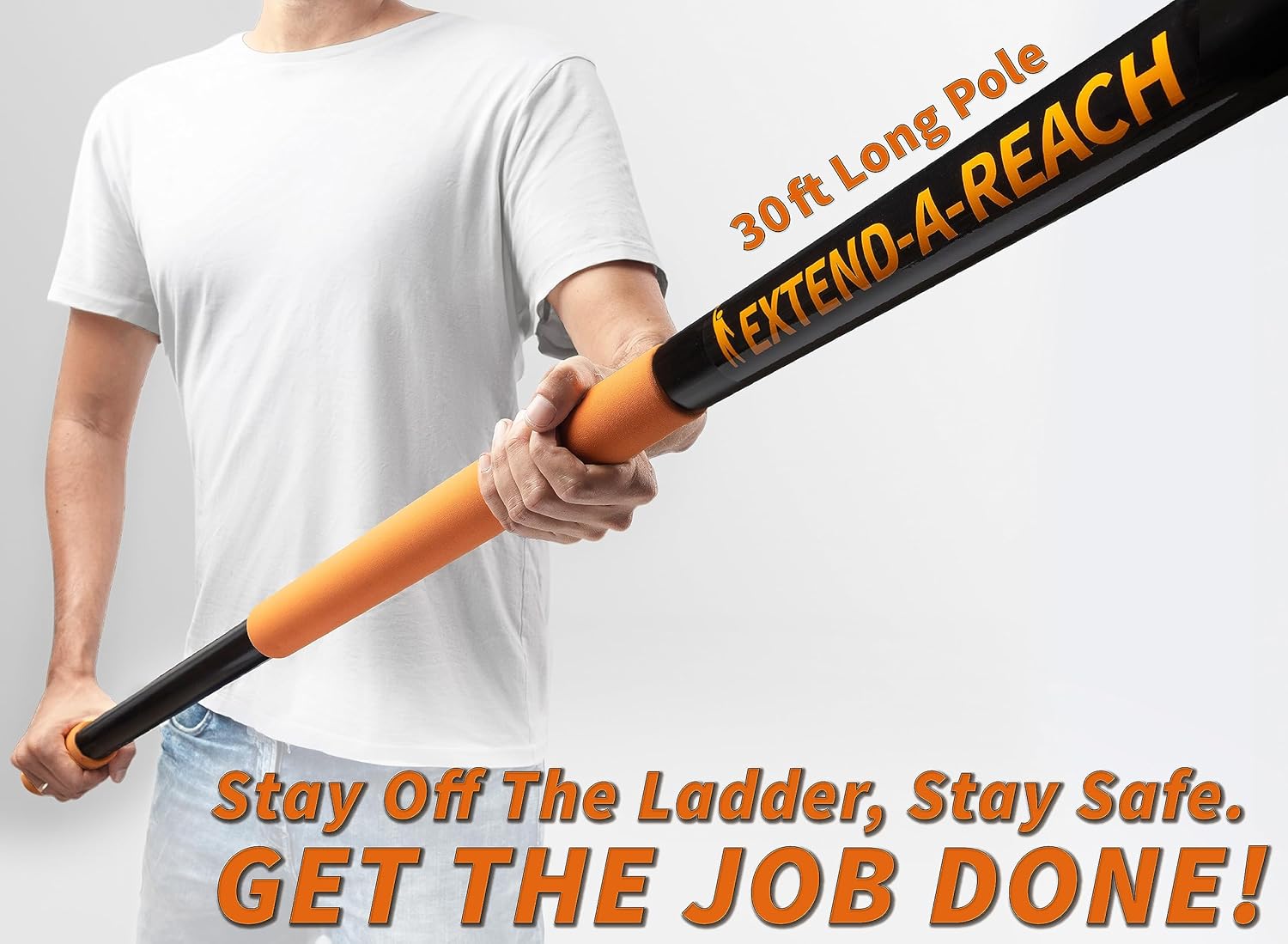 - THE ONE EXTENSION POLE THAT WON’T BREAK - Made of meticulously crafted, extra-thick aluminum, this extension pole is stiffer, tougher, and stronger. While other mango picker poles can get wobbly and fragile when fully extended, the EXTEND-A-REACH orange tree picker will always perform solidly. The apple picker pole also features quick-release thumb lever clasps for easy extension control and non-slip hand grips to ensure maximal stability and reliable grip.