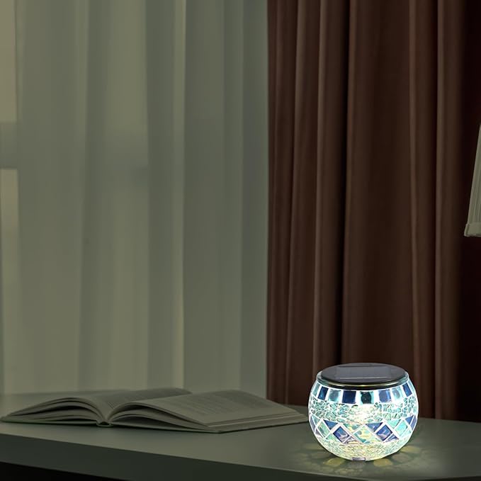 - UNIQUE MOSQUE DESIGN: Each fixture is made of clear blue mosaic glass, which radiates a charming light and creates a romantic and dreamy atmosphere, perfectly suited for patio, garden or balcony decorations, making your outdoor space glow with personality and charm