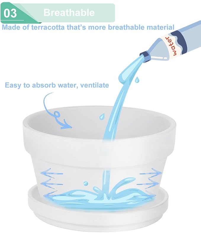 - Saucer&Drainage: Package included 6pcs terra cotta saucer to prevent dust and water from falling out of the drain, to keep the interior clean and to increase the beauty of the room the drainage outlet can prevent water accumulation and extend the life of the plant.