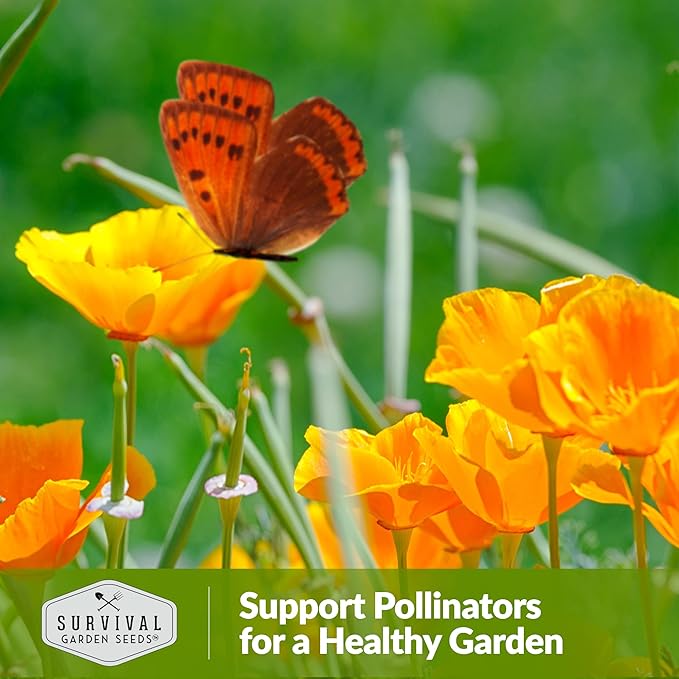Survival Garden Seeds 3 Packets California Poppy for Planting - Seed Packs with Instructions to Grow Eschscholzia Californica Plants in Your Home Flower Garden - Non-GMO Heirloom Wildflower Variety