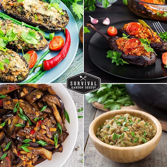 2 Packs Black Beauty Eggplant Seed for Planting - Packet with Instructions to Grow Purple Aubergine Plants in Your Home Vegetable Garden - Non-GMO Heirloom Variety - Survival Garden Seeds