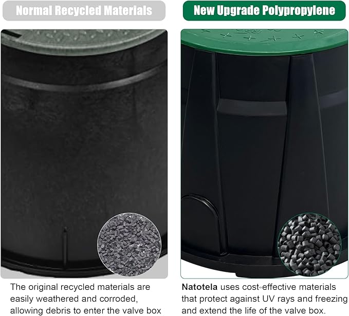 - 【Long Service Life】Natotela irrigation valve box is made of durable polypropylene(PP) to prevent aging and damaging from sun, rain, vandalism