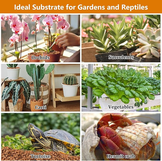 - Wide Application: Coco chips are suitable for garden planting, indoor flower pots, potting mixes, seed germination, raised garden beds, etc, promoting healthy root growth and rapidly expands the root system; Ideal for cacti, succulents, herbs, vegetables, microgreens and hoyas; It can also be used for reptile substrate and improve the living environment for pets