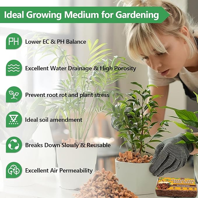 - Ventilation and Drainage: Coconut husk serves as a light and fluffy growing medium, good breathability and drainage help plant roots breathe effectively, stay moist for quite some time, prevent soil compaction and root rot; Providing a stable growing environment for plants; Reduce watering, if you are tired of pine bark or perlite, then it must be the perfect substitute