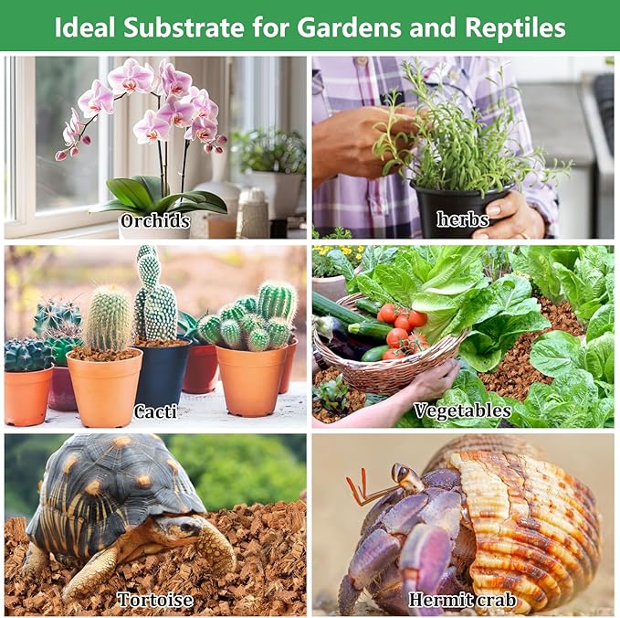 - Wide Application: Coco chips are suitable for garden planting, indoor flower pots, potting mixes, seed germination, raised garden beds, etc, promoting healthy root growth and rapidly expands the root system; Ideal for cacti, succulents, herbs, vegetables, microgreens and hoyas; It can also be used for reptile substrate and improve the living environment for pets