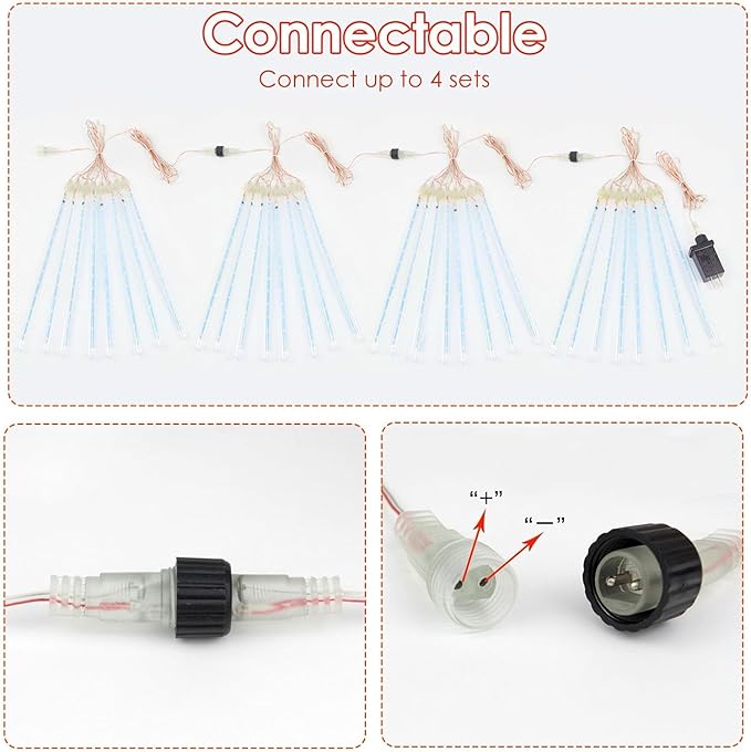 - Connectable Christmas Lights with End-to-end Connector: The LED string lights can be connected by its male and female connectors up to 4 sets together. It is an ideal product for your holiday and xmas tree decorations indoor/outdoor
