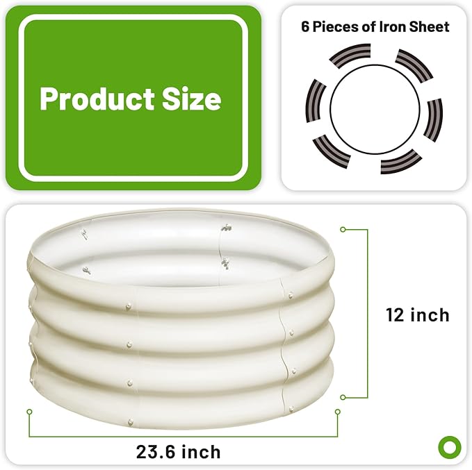 - SIZE: The plant bed measure is 23.6"L x 23.6"W x 11.8"H. This round planter box provide ample growing space to raise vegetables, flowers and plants.
