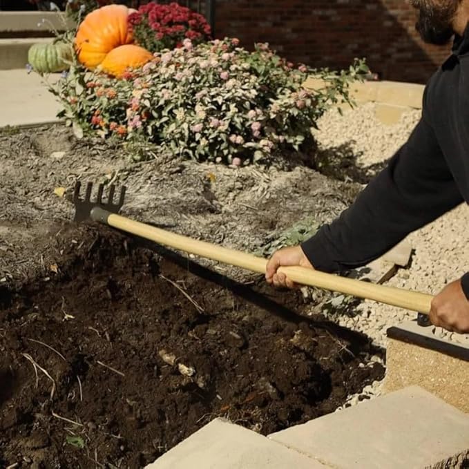 Gemplers Steel Rake Hoe with Wood Handle, 5 Wide Tines, Multi-Purpose Tool for Gardening, Planting, and Fire Prevention, Commercial Grade