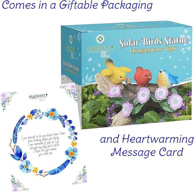 Malister Bird Figurines with Color Changing Solar Light Garden Decor, Outdoor Decor Garden Statues, Gnome Decor Garden Art Outdoor Statues Patio Decor Lawn Yard Art, Statue Gifts