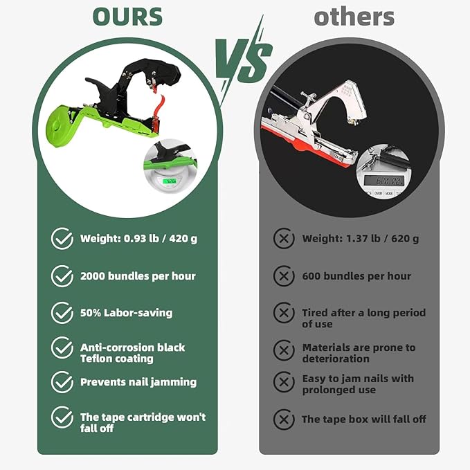 - Time-saving & Lightweight: Our plant tying machine tool features a 45mm opening for wider use on thicker branches. Weighing only 420g, It's lighter than traditional vine tying machines and can save up to 50% of labor time