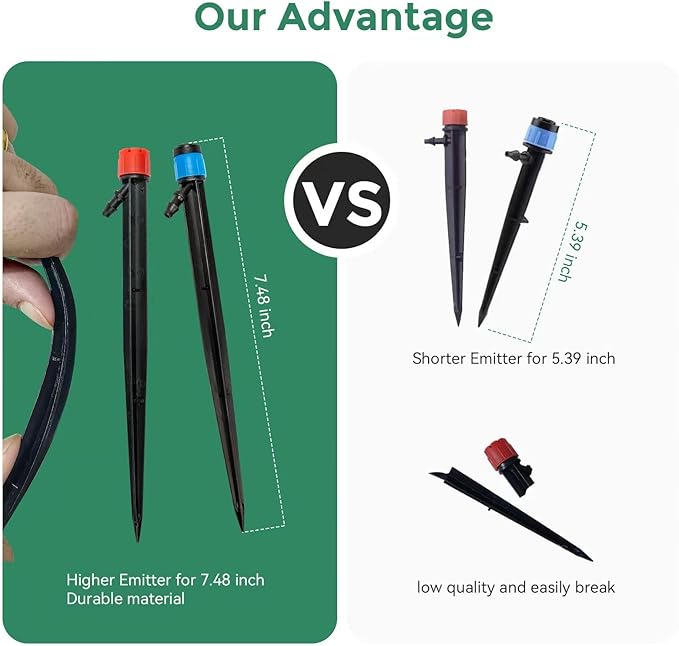 - Higher Stake Sprayer : we offer the emitters sprayer with higher stake 7.48 inch, which allow you to water more plant areas.