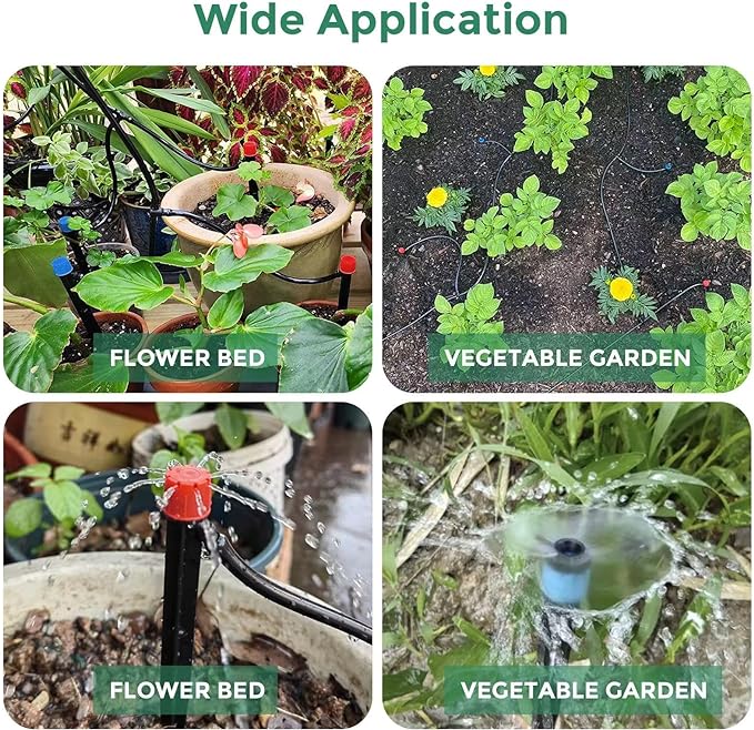 - Adjustable water flow: you can adjust the drip emitters to choose the suitable water flow.
