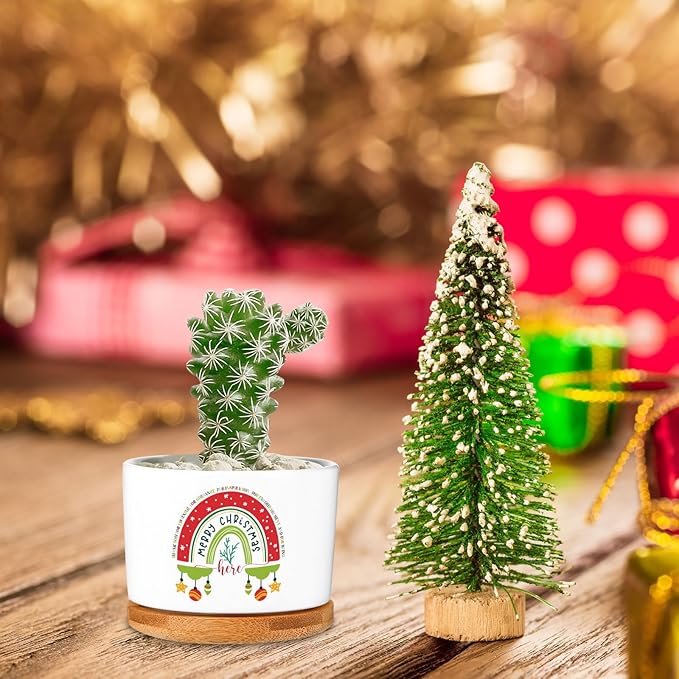 - Distinctive Christmas Rainbow Design: our small ceramic pots for plants feature the distinctive Christmas rainbow design, and are printed with a variety of warm thank you words, such as [Thank You For Being Awesome], [Merry Christmas Here], can serve you not only as flower pots for succulents, cactus, but also as modern home decorations to add a decorative touch