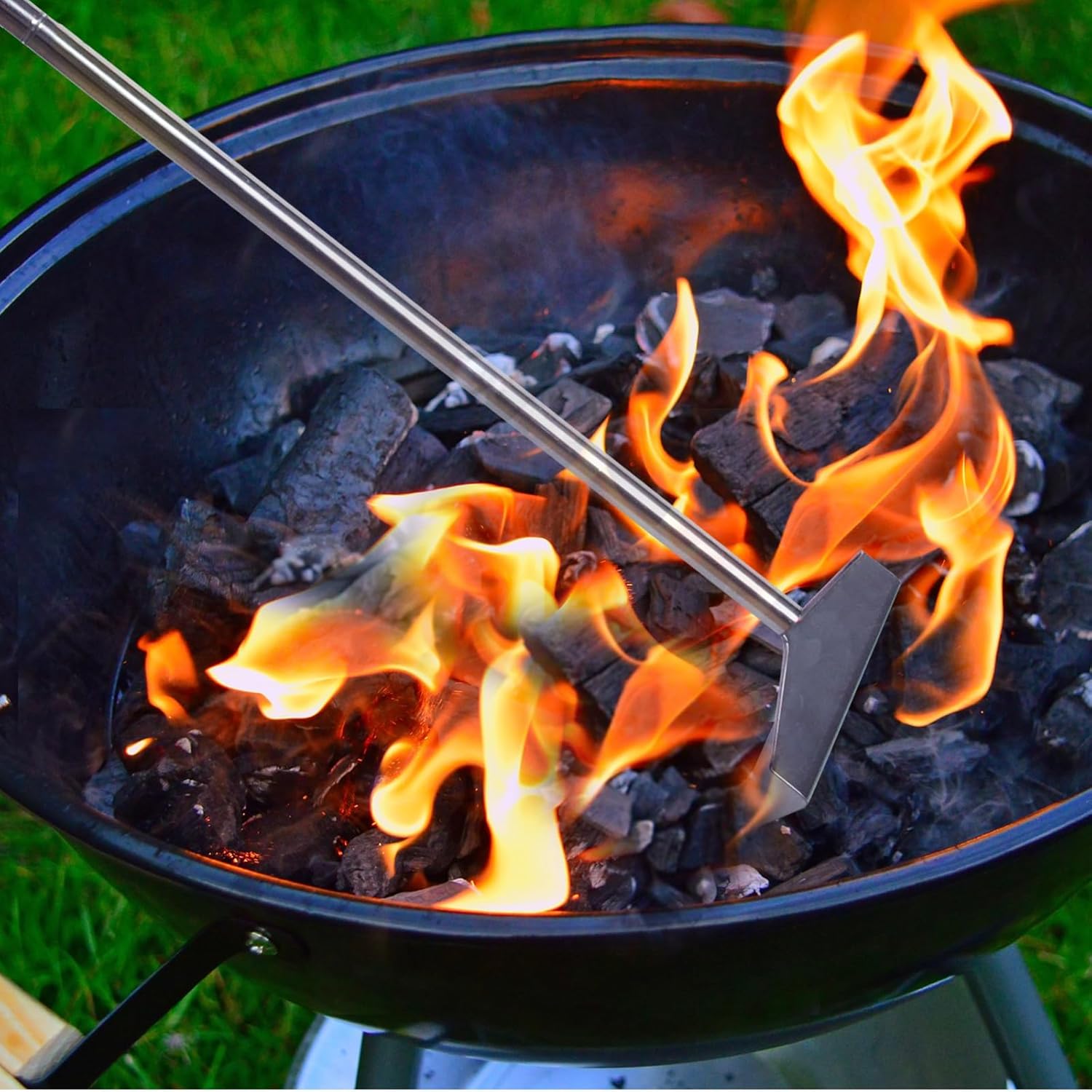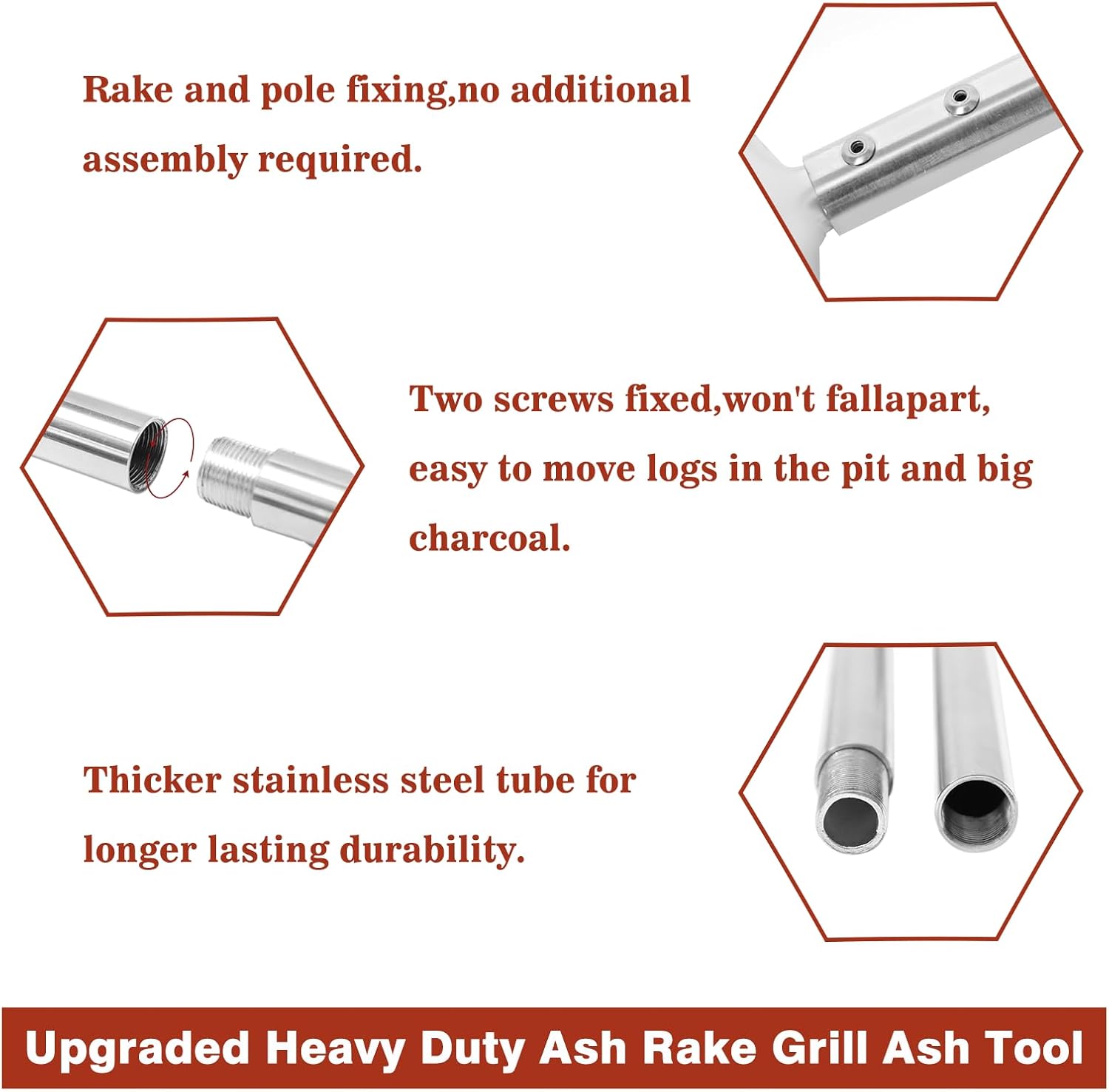 - Heavy Duty Charcoal Ash Tool - Stainless steel charcoal ash rake that won't twist at high temperatures.The charcoal ash rake head and pole are directly connected for greater durability and sturdiness for extended use.