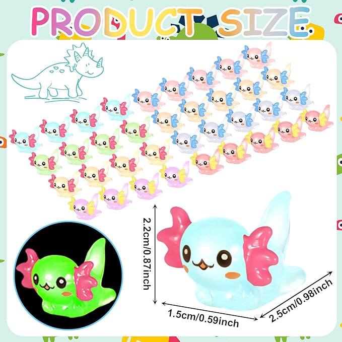 80 Pcs Mini Resin Axolotl Luminous Small Axolotl Miniature Animal Figurine Luminous Mini Resin Animal Party Favors for DIY Garden Landscape Decoration(Multicolor)