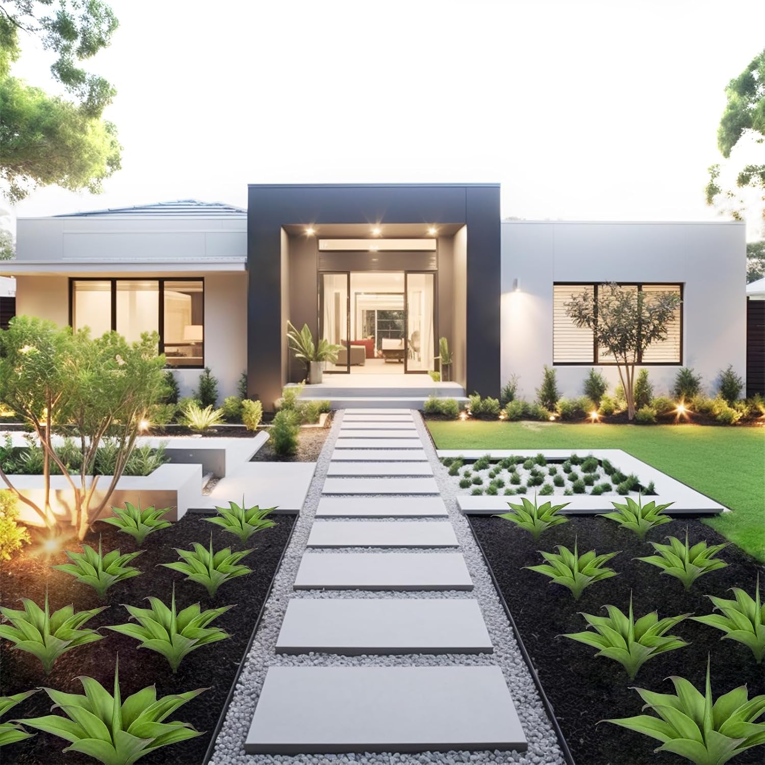 - [About The Large Fake Plants Color]: natural green, replica of the real agave color, delicate and durable, outdoor sun protection.Low Maintenance Unlike real plants, these artificial agave planters require no watering, pruning, or fertilizing. faux succulent outdoor plant enjoy the beauty of greenery without the hassle of maintenance.