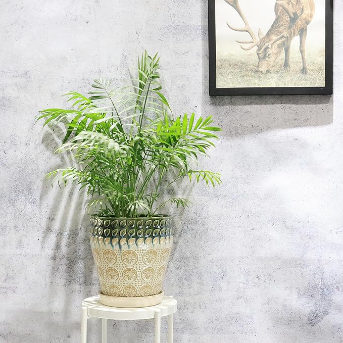 - Elaborate Composition: rich embossed pattern design of 8inch + 6 inch ceramic flower pots, add vitality and sense of secret to your home