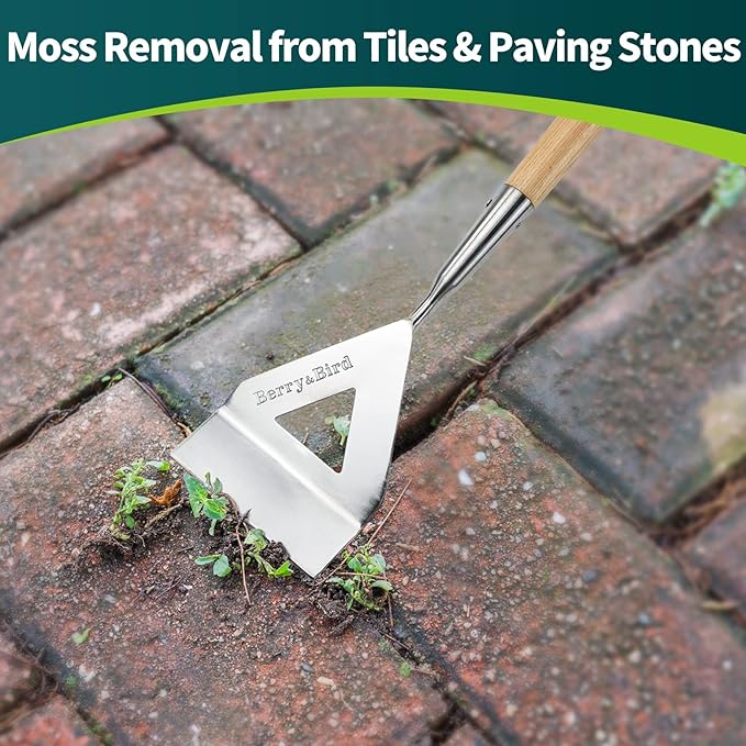 Berry&Bird Dutch Hoe, Stainless Steel Head with Wooden Handle Weeder, Women Heavy Duty Garden Tool for Weeding and Cultivating