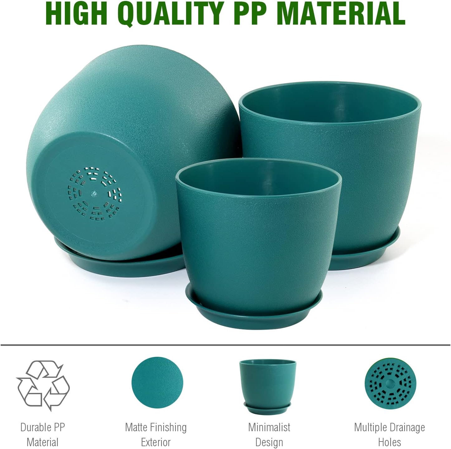 - [Lightweight and Durable] Plastic planters retain moisture for extended periods, making them perfect for those who forget to water often. Made of lightweight, premium plastic, these pots are durable and resistant to breakages. Sturdy, yet light, they provide a rich look and feel. Weather and UV-resistant, ensuring color longevity.