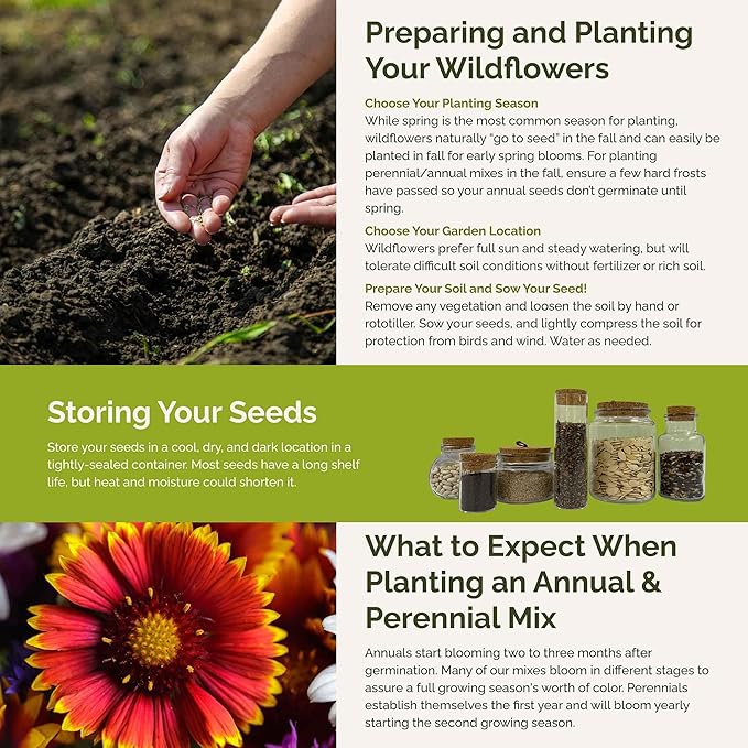 - 100% Pure, Non-GMO Seeds – No fillers, favorites only! Includes 12 easy-to-grow species: Yarrow, Columbine, Cornflower Tall Blue, Godetia, Lance Leaf Coreopsis, Foxglove, Purple Coneflower, Blanket Flower, Candytuft, Perennial Lupine, Forget Me Not, Black Eyed Susan, and others, subject to change.