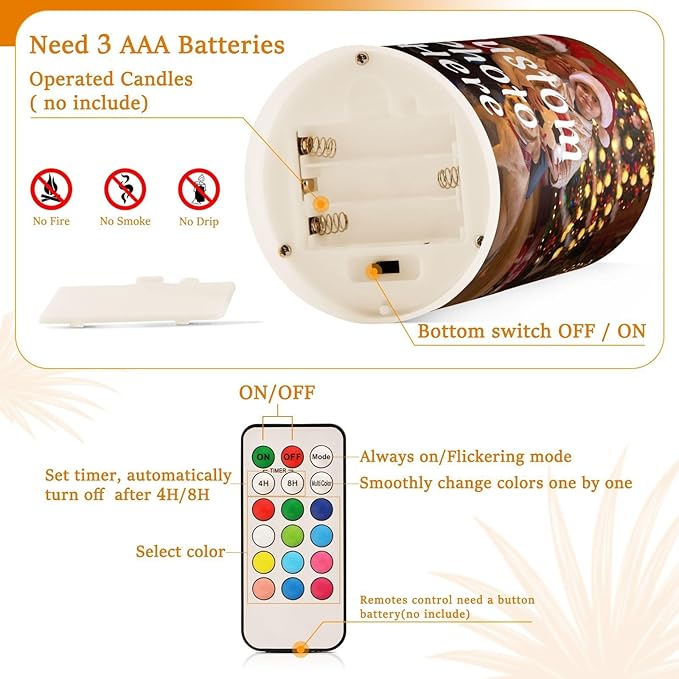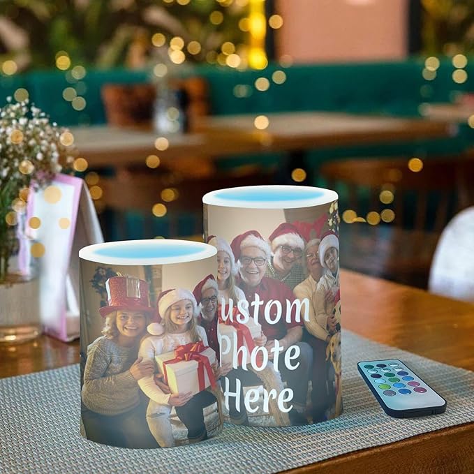 Personalized Flickering Flameless Candles, Custom Photo LED Candles Set of 2, Remote Timer Battery Operated Candle for Valentine Wedding Birthday