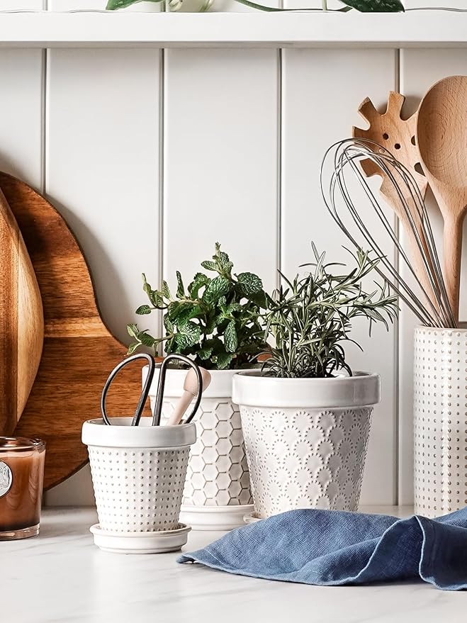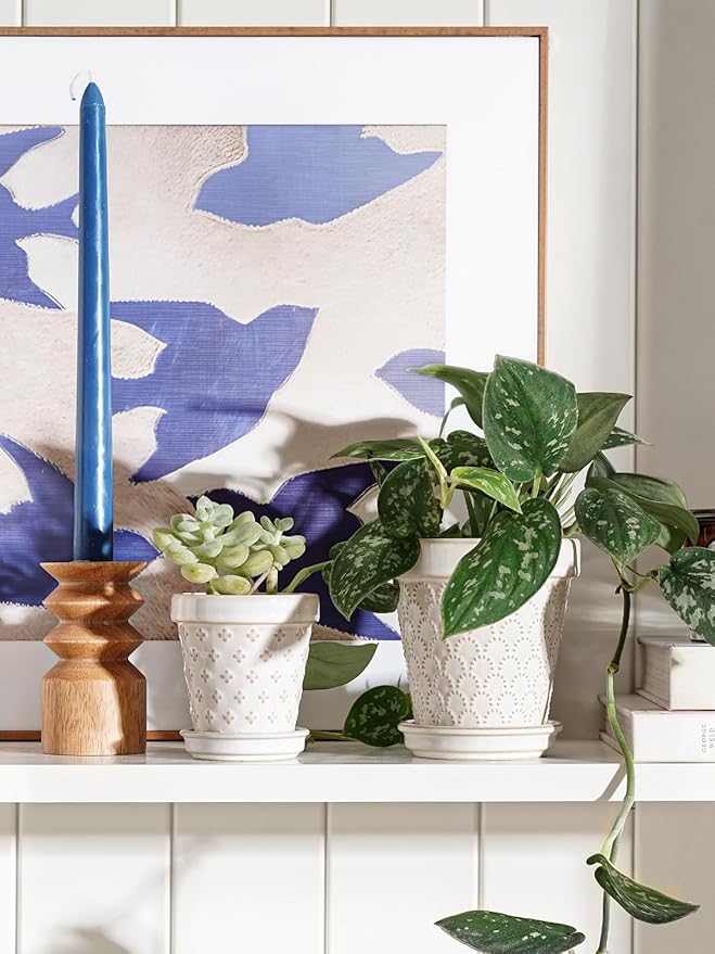 - Decor Living Space: Discover a cute embossed design in a compact 3-inch size – good for planting succulents and cacti. These ceramic flower pots add a touch of green to tables, windowsills, balconies, or bookshelves. The delicate balance of embossed design and botanical vitality converges, creating an atmosphere of unparalleled grace and visual delight